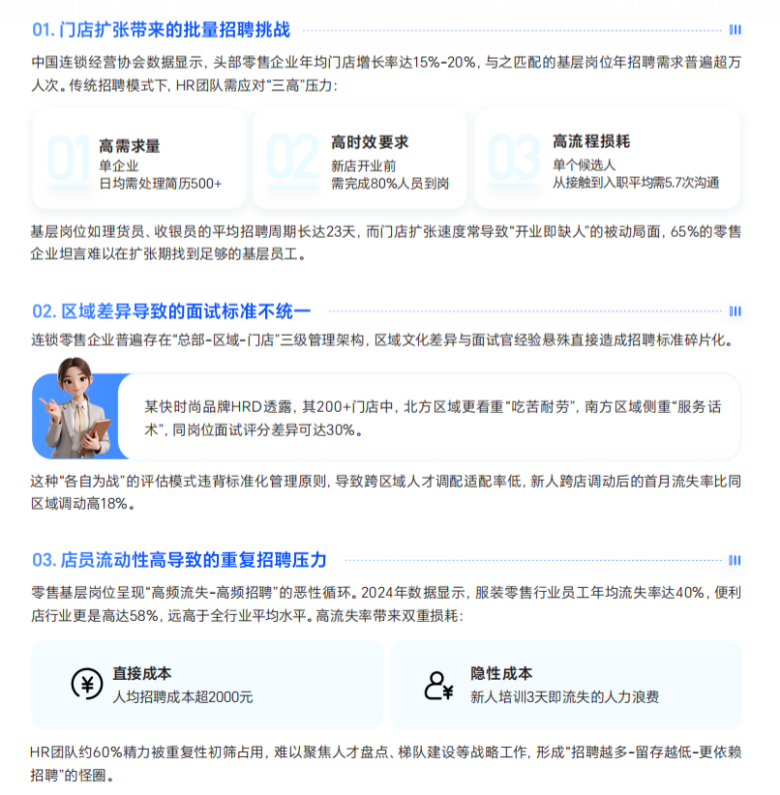 很多AI面试方案在单一岗位、单一地区看似有效,但一旦进入跨区域、多门店、多基地场景,就迅速失效。原因不在模型精度,而在于岗位标准、管理逻辑、业务节奏本身高度碎片化。