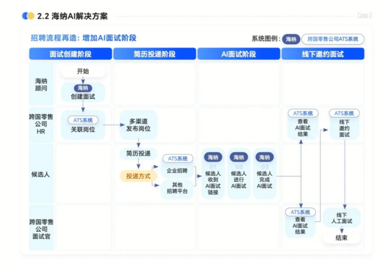 在零售连锁、服务业等高流动场景中,案例集中多次提到:问题并不在招聘速度,而在于同一岗位在不同区域被反复重新理解。海纳AI通过将STAR等方法论转化为可被系统执行的评估维度,使总部标准能够在多门店、多区域场景中稳定复制,从而直接影响留存质量,而不仅是通过率。